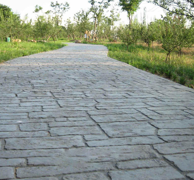 4.彩色脫模粉處理:施工的表面均勻拋撒彩色脫模粉,將整個表面覆蓋,同時在模具的表面也上一些脫模粉;