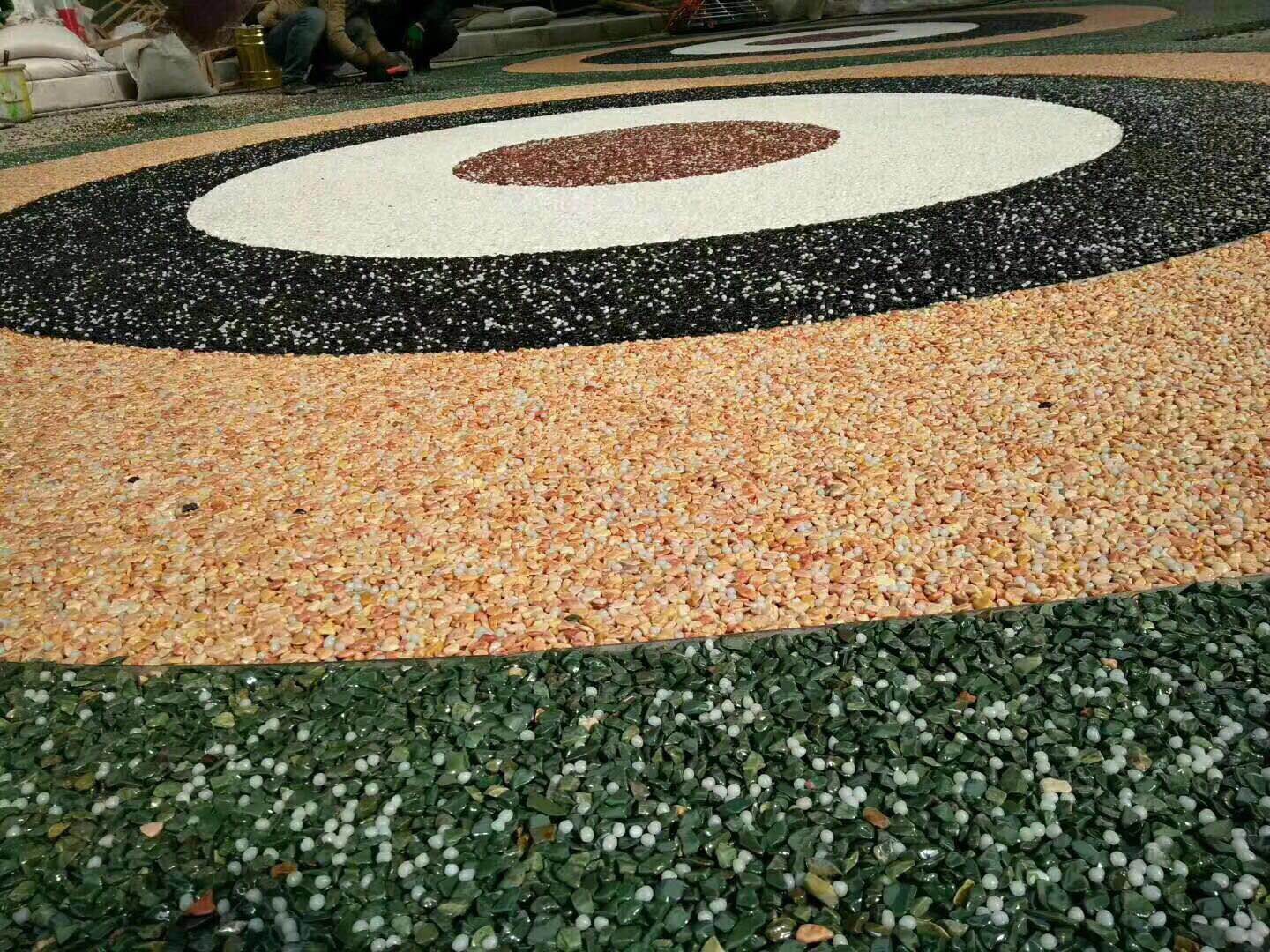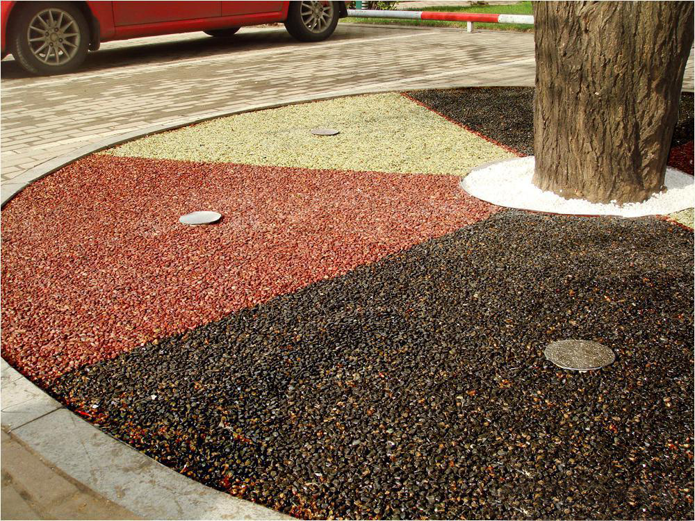 膠粘石透水路面是由改性高分子樹(shù)脂為膠結(jié)材料,將天然彩石、拋光色石、玻璃、水晶石、人造骨料等牢固地粘接在一起,鋪設(shè)在混凝土、透水混凝土、瀝青或級(jí)配砂石基層上的生態(tài)景觀地面鋪設(shè)材料,具有高效透水、自然美觀、色彩多樣、經(jīng)久耐用等特點(diǎn)。可用于透水性景觀道路、車(chē)型或人行道、公園和廣場(chǎng)等場(chǎng)所,也可應(yīng)用到室內(nèi)場(chǎng)所。